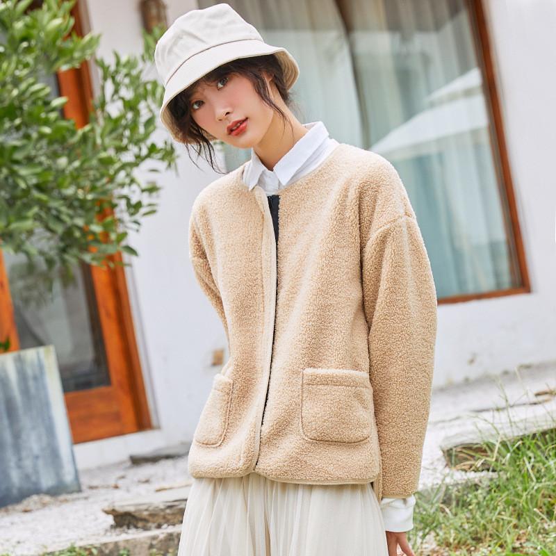 【タイムセール】フリースジャケット レディース ボアジャケット ブルゾン アウター もこもこ クルーネック 羽織り ス 無地 暖か 防寒 秋冬 通勤 おしゃれ