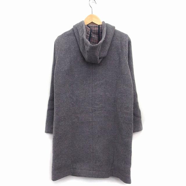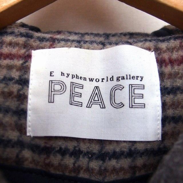 イーハイフンワールドギャラリー E HYPHEN WORLD GALLERY ピース PEACE フード コート ミドル丈 ウール混 総柄 F 灰 /HT17 レディース