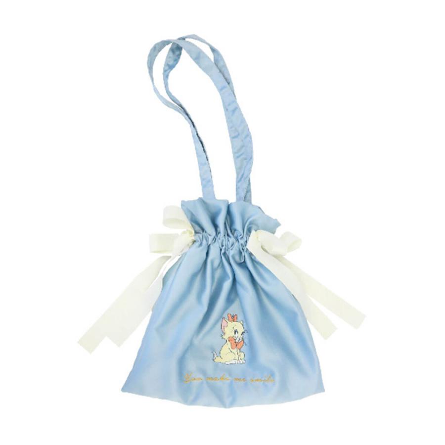 キュッと開口部を絞る巾着仕様で、長いリボンが魅力的なトートバッグ。