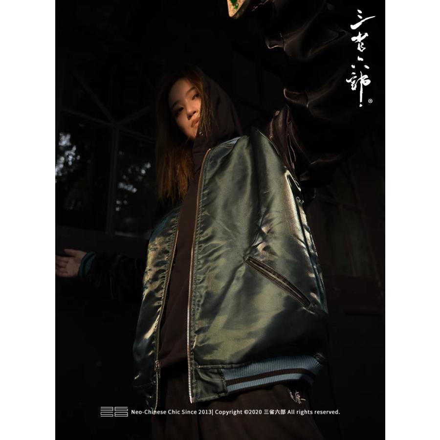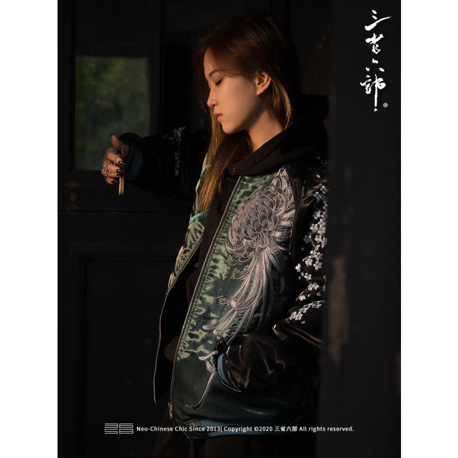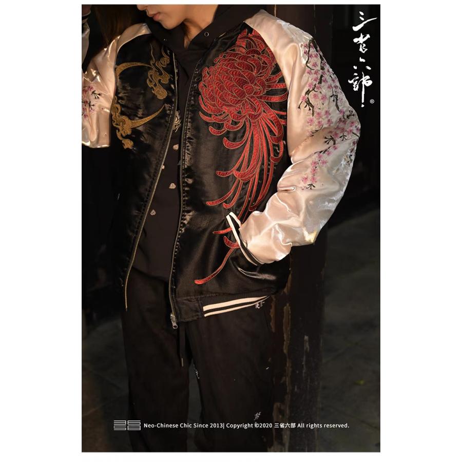 [ヨコスカ] 男女兼用 麒麟望月刺繍マーク スカジャン リバーシブル レーヨン ジャケット 横須賀ファッション M~3XL 野球服 おしゃれ