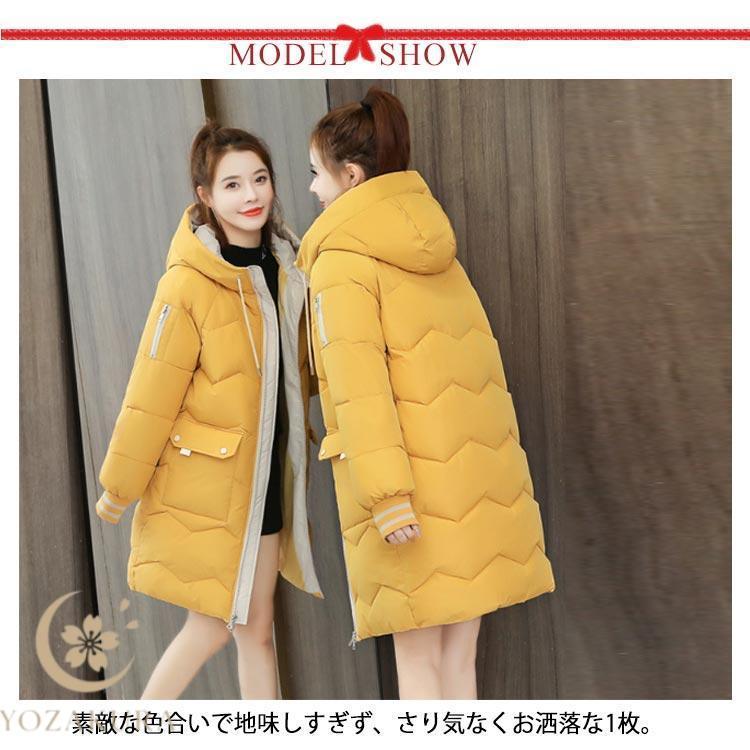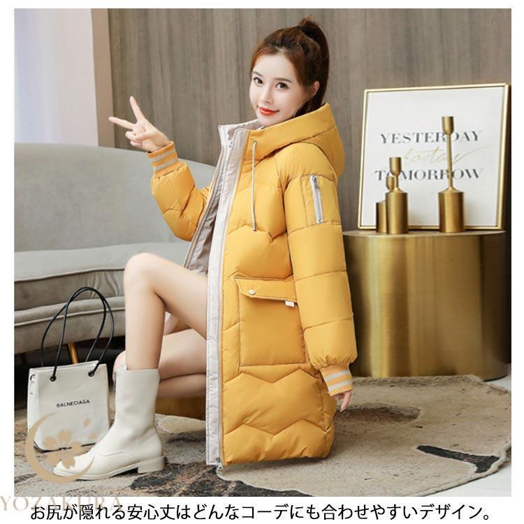 中綿コート レディース 膝丈 ベンチコート カジュアル ロング丈 軽い 秋 ハイネックフード 防寒 防風 冬 着痩せ アウター あったか