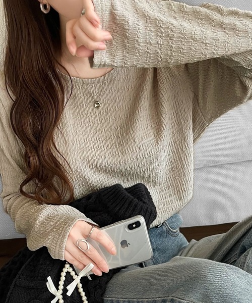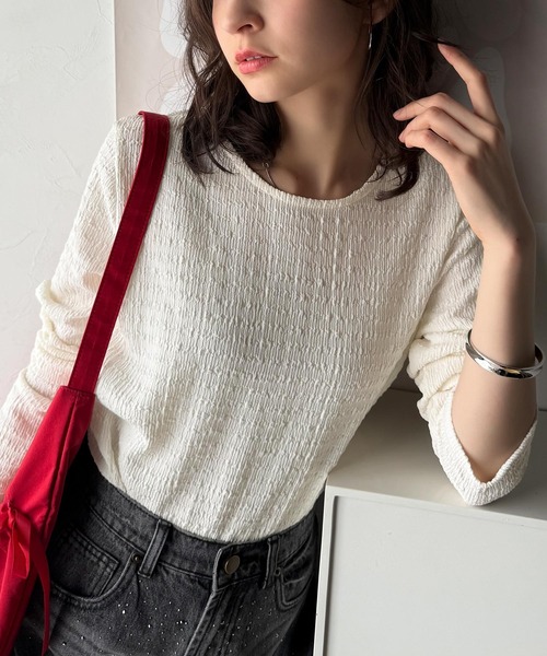 キーワード:tシャツ レディース クルーネック ワンポイント 長袖 無地 WEB限定 オフィスカジュアル キレイめ ドライブ 秋 春 新生活 大人カジュアル 定番