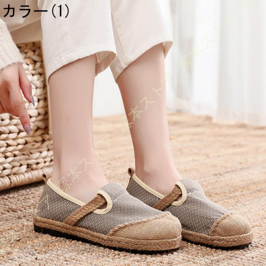レディース モカシン ローファー ジュート スリッポン ママシューズ コンフォート エスニック 通気 カジュアル 春 夏 秋 カジュアルシューズ 柔らかい