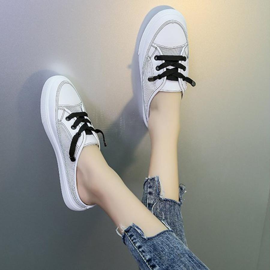 メッシュ スニーカー ミュール レディース 歩きやすい靴 おしゃれ フラットシューズ