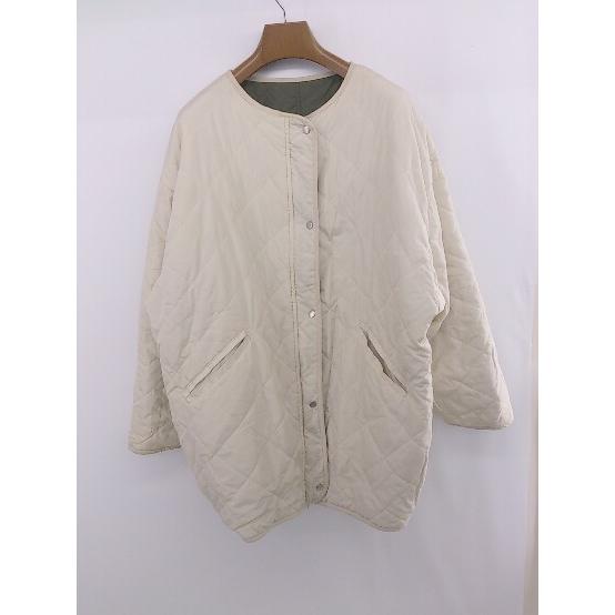 ◇ Lian リアン リバーシブル パイピング 長袖 キルティング コート サイズF グリーン アイボリー系 レディース P