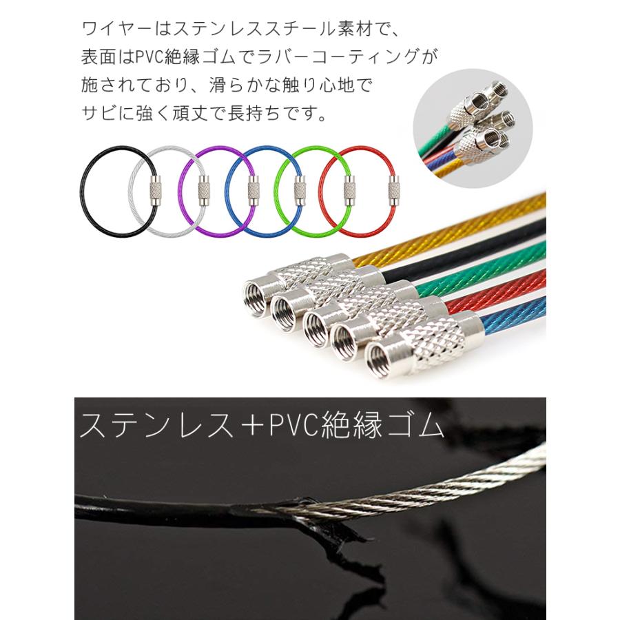 ワイヤーキーリング キーチェーン キーホルダーロックワイヤー ステンレス カラフル アクセサリー 15cm 1.5mm 単品