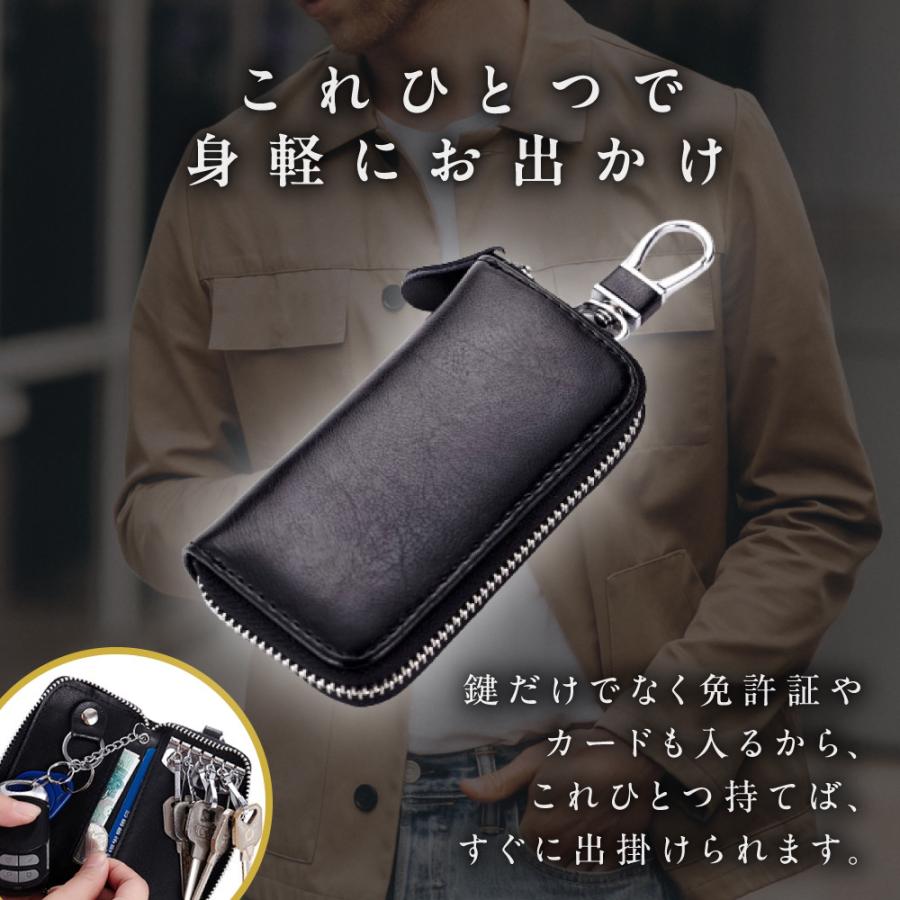 本革 キーケース 【一部当日発送】メンズ キーホルダー スマホキー 6連 カード入れ RFIDスキミング防止 牛革 お札入れ 父の日