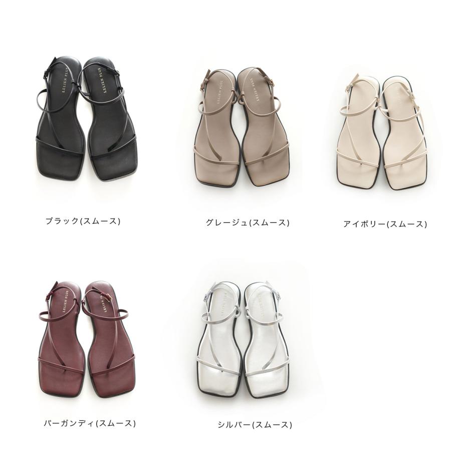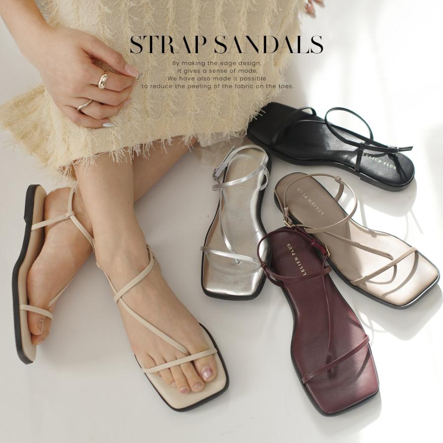 足を美しく見せてくれる華奢ストラップフラットサンダルアンクルストラップは隠しゴムでベルトを外さず脱ぎ履き可能。