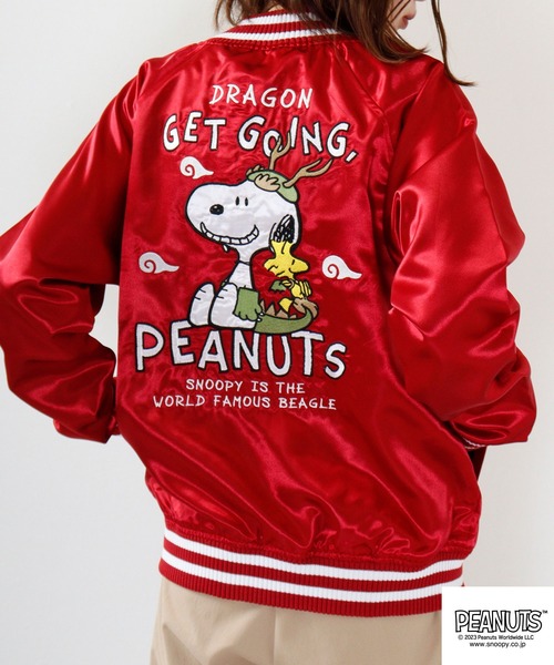 PEANUTS スカジャン スヌーピー 龍柄 レディース メンズ