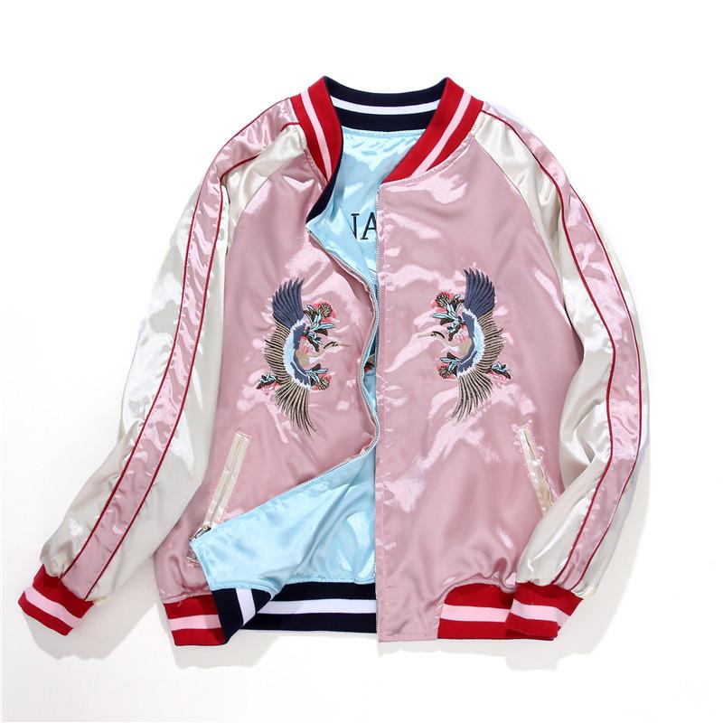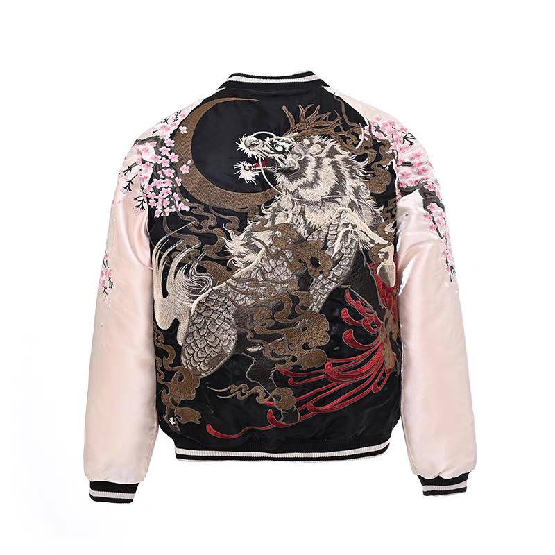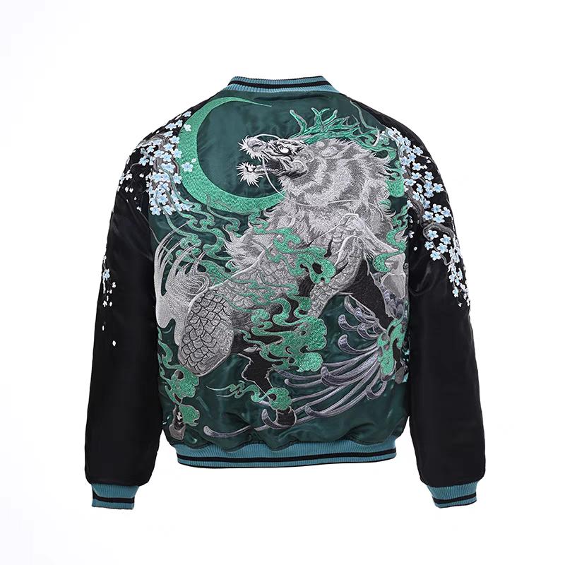 [ヨコスカ] 男女兼用 麒麟望月刺繍マーク スカジャン リバーシブル レーヨン ジャケット 横須賀ファッション M~3XL 野球服 おしゃれ
