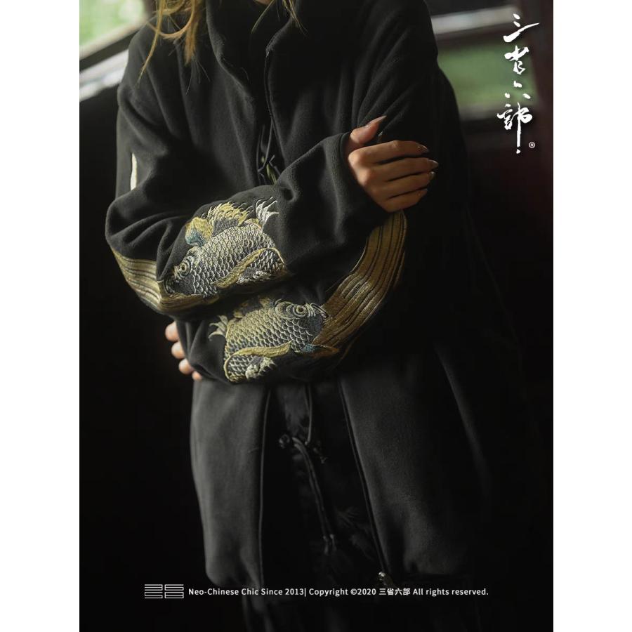 [ヨコスカ] 男女兼用 錦鯉刺繍マーク パーカー トップス ファスナー付 高級品 フィット 横須賀ファッション M~3XL 野球服 おしゃ