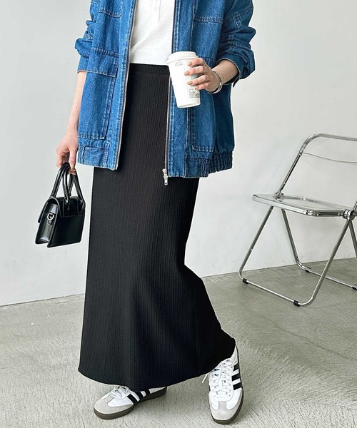 GeeRA スカート 「S-XLサイズ展開」すっきり見え!セルフカットストレートタイトロングスカート