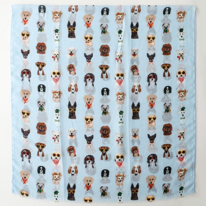 送料無料 【セール】男女兼用 大判薄型 アニマル ワンちゃん大集合柄 ストール スカーフ パレオ 90920c