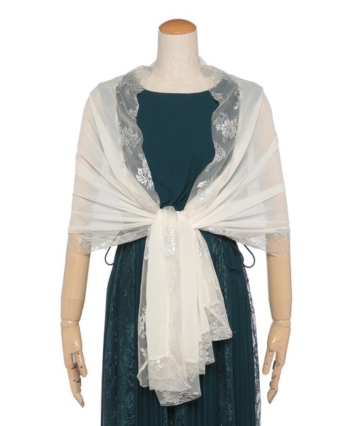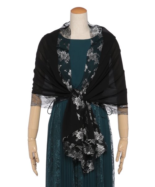 商品名:ラメ刺繍シフォン見頃付きショール
