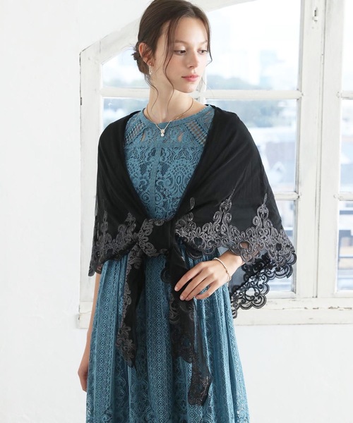 Dorry Doll ストール マフラー ラメ刺繍シフォン見頃付きショール レディース