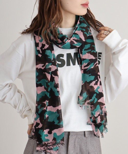 FUNALIVE ストール マフラー コットン 迷彩プリントストール レディース