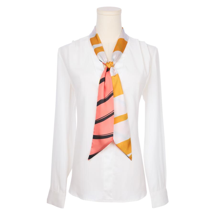 特徴:ストライプ、葉、数字などの柄を、コントラストカラー、グラデーション、オンブレ、カラフルなど様々な色でデザイン。スカーフはそれぞれ異なり、それぞれに個性があります。シルクのような風合いで、クラシックでありながらレトロな雰囲気が、女性をよりエレガントでスタイリッシュ、そしてロ マンチックに演出します。
