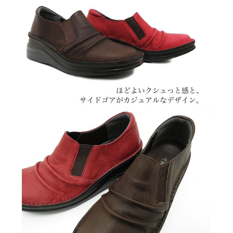 インコルジェ スリッポン 本革 日本製 コンフォートシューズ くしゅくしゅ サイドゴア 幅広 3E 歩きやすい 疲れにくい 厚底 (FOO-SP-8303)