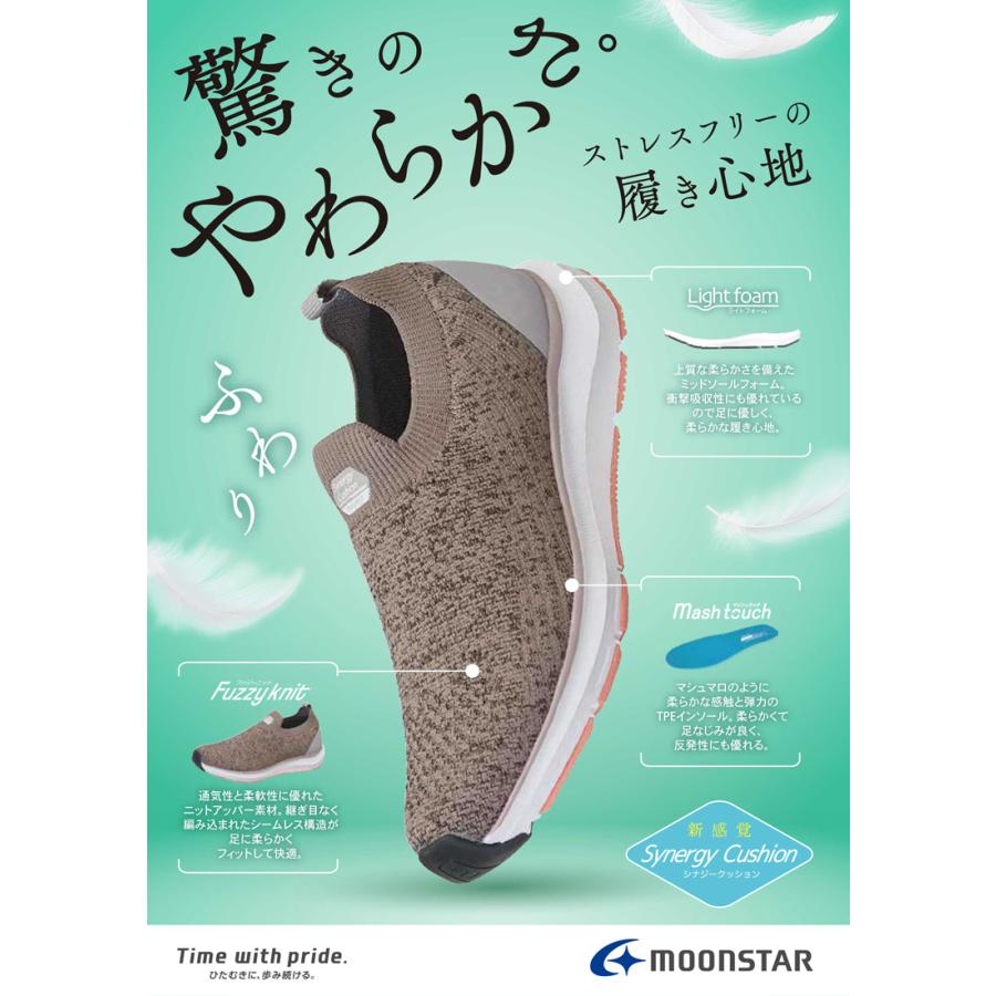 SNGY cushion ムーンスター moonstar レディース スニーカー シナジー L22 スリッポン 軽量 軽い 幅広 3E ワイド ウォーキング 歩きやすい 疲れにくい 通気性 メッシュ
