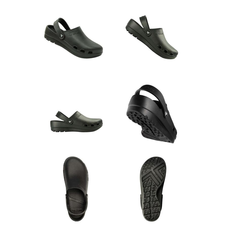 TELICの快適な履き心地に、医療従事者向けの機能を加えたサボタイプサンダル。長時間の立ち仕事にも最適で、普段使いにも対応するシンプルなデザイン。