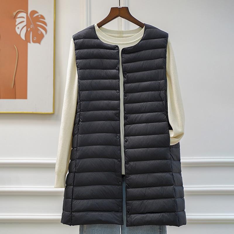 【値下げ】ダウン レディース ジレ インナー ロング丈 羽織り 軽量 着痩せ シンプル きれいめ カジュアル 保温 暖かい 防寒 秋冬