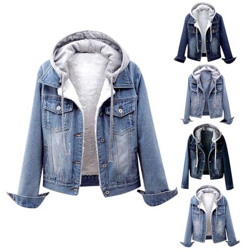 商品名: Black of Friday Deals 2023,Womens Fleece Lined Denim Jackets,Button Down Hooded Jean Jacket Long Sleeve Oversize Casual Boyfriend Winter Coat Hoodies