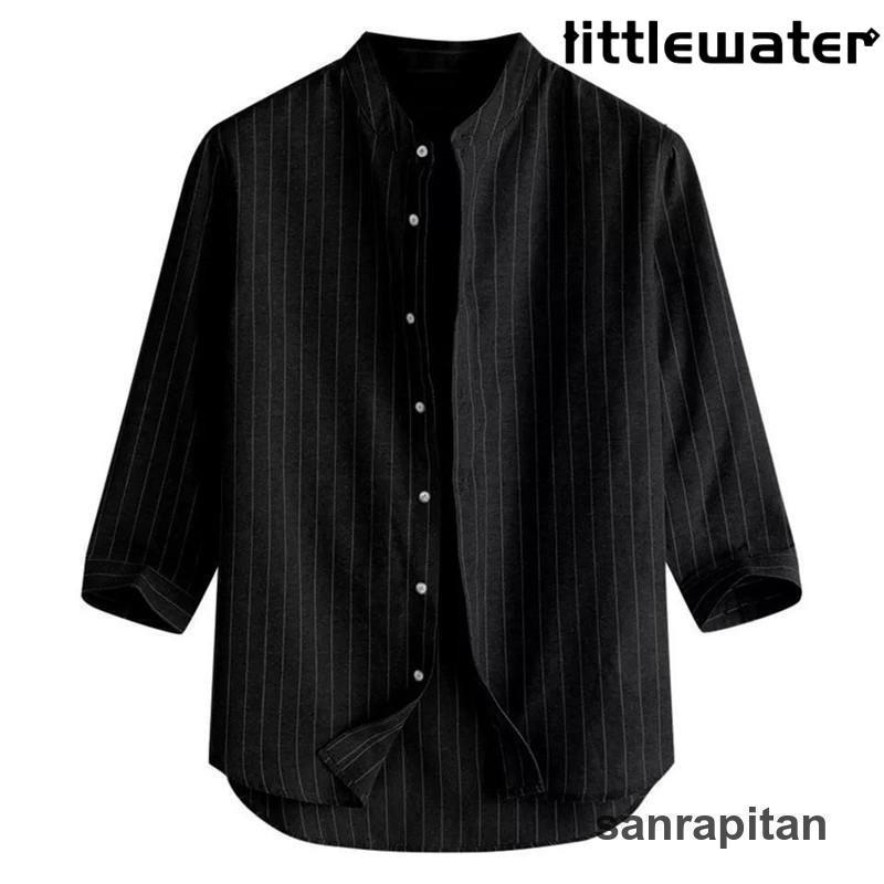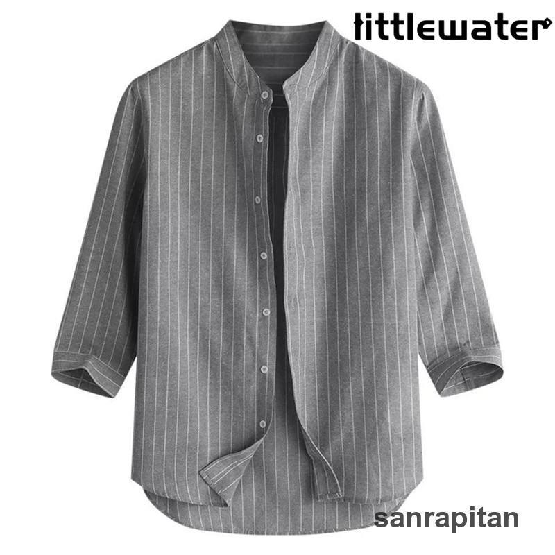 !七分袖シャツ メンズ カジュアルシャツ ストライプ 立ち襟 シャツ シンプル 無地 ビジネス 開襟シャツ リネン 綿麻 おしゃれ 通勤 通学 夏