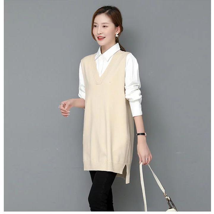 ニットベスト レディース ベスト ニット Vネック トップス ノースリーブ 無地 サイドスリット セーター シンプル カジュアル レイヤード 重ね着 大人 可愛い