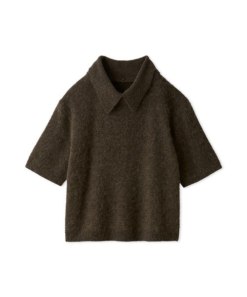 商品名:ポロ衿クロップド丈モヘアニットトップス