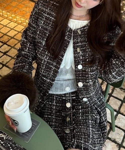 商品名:【セットアップ対応】2WAYツイードショートジャケット 秋服