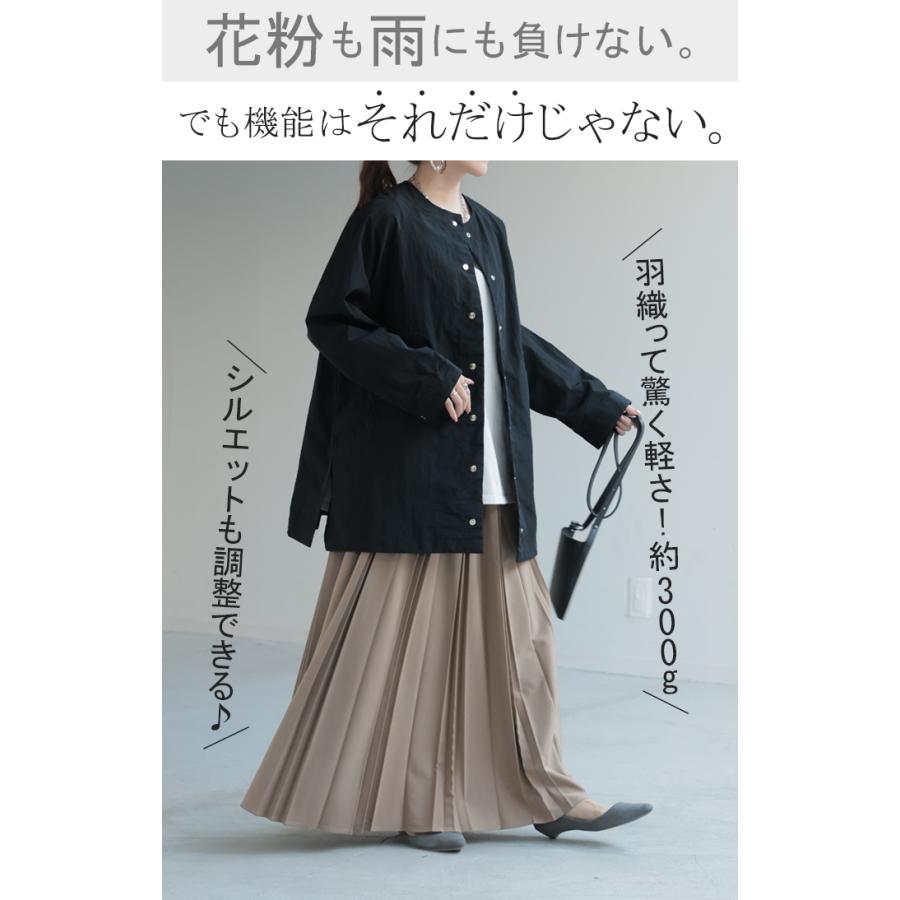 HUG.U ジャケット 花粉 対策 撥水 レディース アウター 軽量 シワになりにくい ロング ノーカラー 無地 長袖 ライトアウター チュニック オーバーサイズ お尻が隠れる