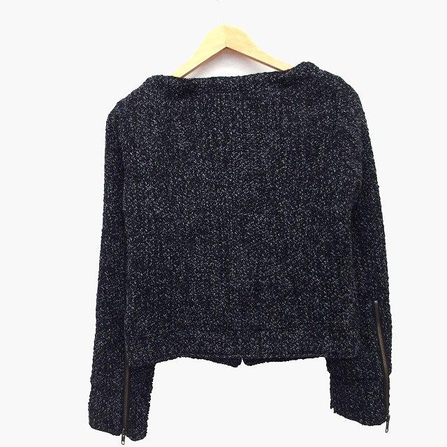 シニカル CYNICAL ノーカラー ジャケット ショート丈 ウール混 総柄 ニット レザー調 袖ジップ 02 ブラック 黒 /HT26 レディース