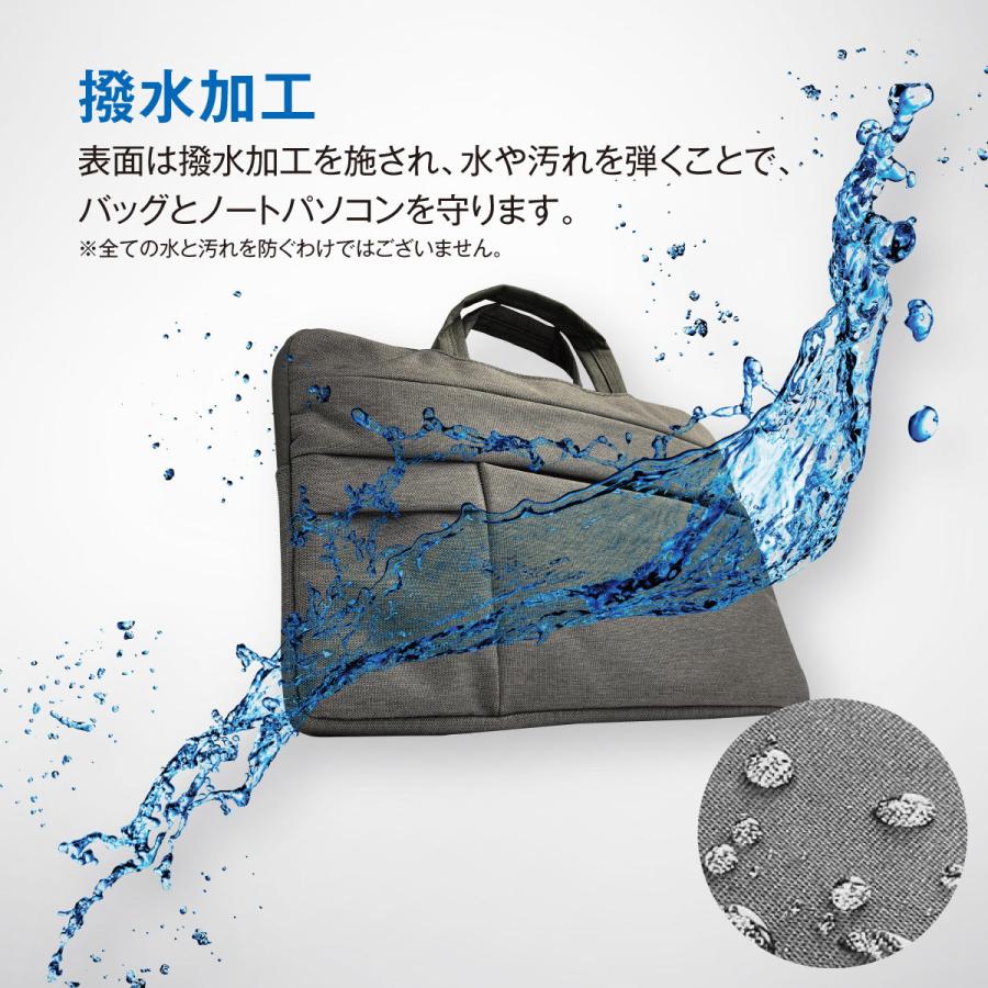 【撥水加工】表面は撥水加工を施され、水や汚れを弾くことで、バッグとノートパソコンを守ります。