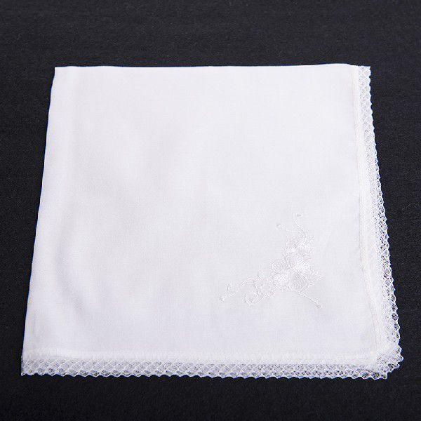 涙する場面の多いフォーマルな席にお使いいただきたい無地に刺繍&レースの単色ハンカチです。【サイズ】約44cm×約44cm 【素材】生地:綿100% レース:ナイロン100% 中国製