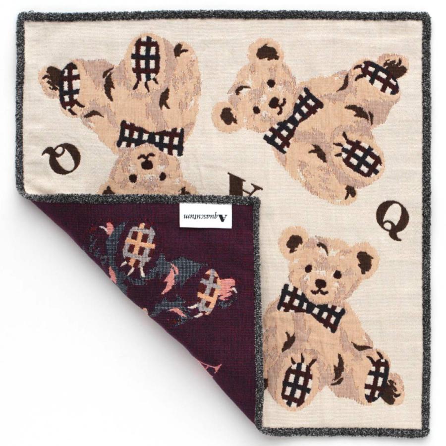 ゴブラン織のハンカチが新登場です。豊かな色柄で表現でされた人気のクマモチーフを、アクアスキュータムらしいカラーリングでまとめました。