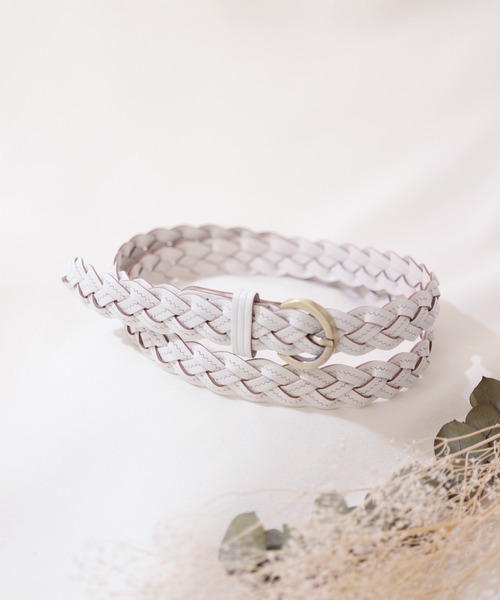 florist ベルト 「牛革」ラウンドバックルの華奢メッシュベルト レディース