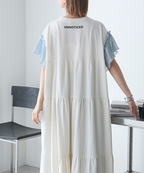 forksy. ワンピース 「forksy.」ラメフリルスリーブ配色バックプリントワンピース