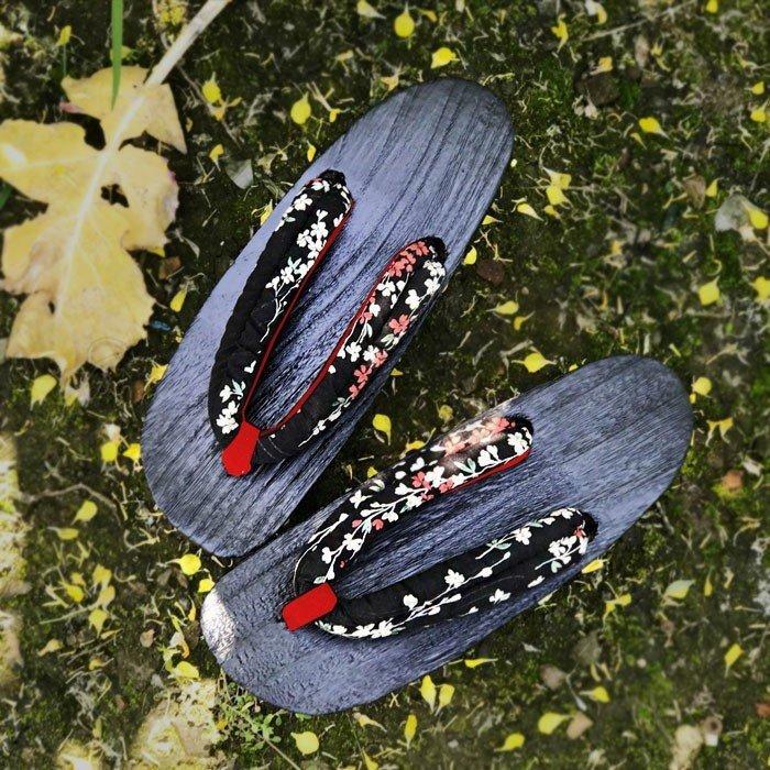 下駄の台は天然の木を使用しているため、木目などの出方が画像と異なったり節がある場合がございます。あらかじめご了承くださいませ。