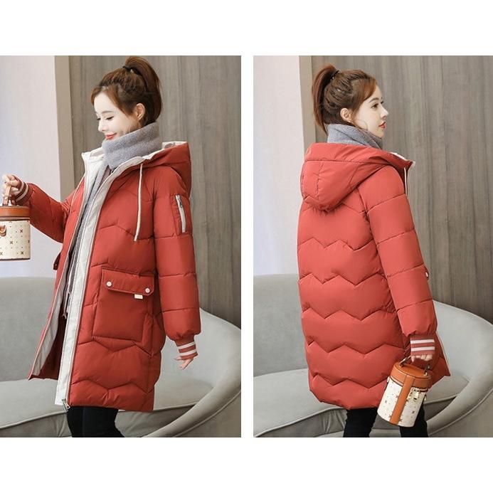 plusnao 中綿入りコート ダウン風 膝上丈 レディース 女性 アウター ミディアム丈 長袖 フード付き ポケット ジッパー ファスナー 暖かい 防寒 大きいサイ