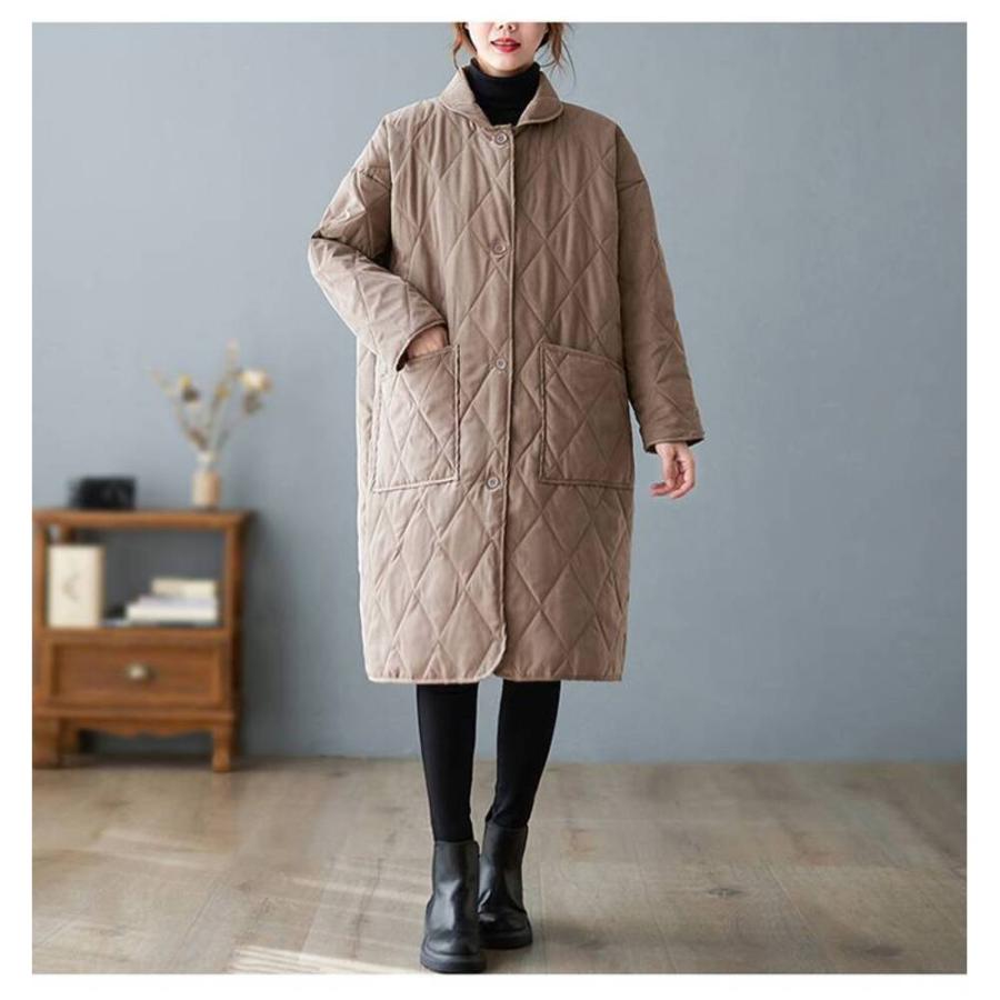 キルティングコート レディース 秋冬 ロングコート アウター 長袖 コート 軽量 ノーカラー 中綿 大きいサイズ 防寒 あったか おしゃれ 体型カバー 冬