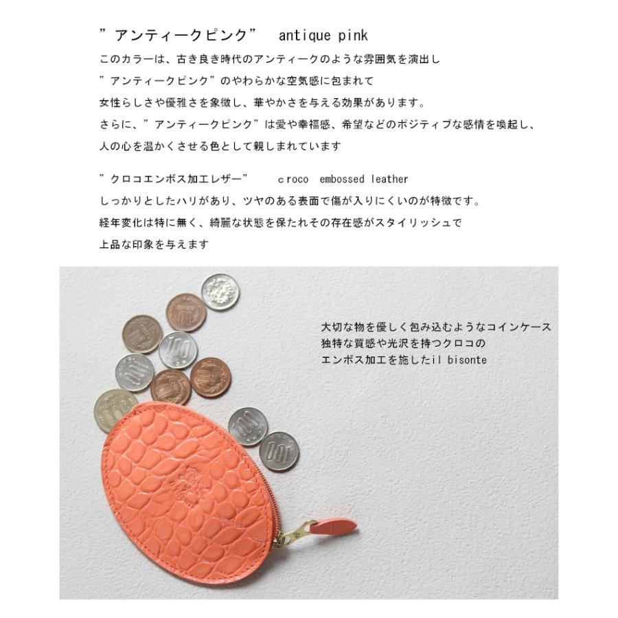 IL BISONTE イルビゾンテ 財布 BISONTE〔 2024年 新作 〕オーバルコインケース アンティークピンク(クロコ型押し) 小銭入れ 54_1_ 54242310442 ( 商品番号 IB-24-10442 )