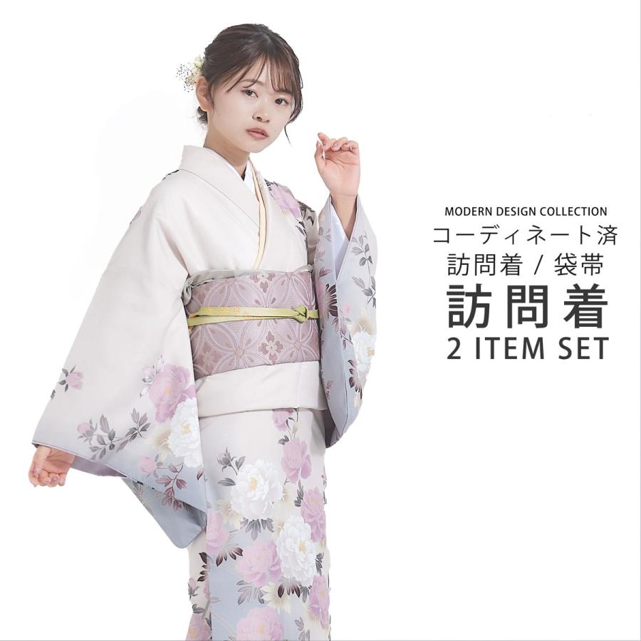 NISHIORI 【10%OFFクーポン配布中】お仕立て上がり 訪問着 2点セット 袋帯がセット 白 ホワイト ベージュ レディース モダン くすみカラー 女性 着物セ
