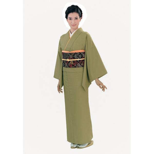 RYOKO KIKUCHI 洗える着物【袷色無地】★R・Kブランド★【F】抹茶色系【No.9】