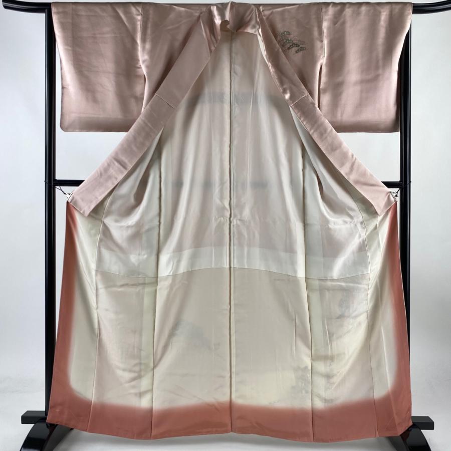付下げ 身丈162cm 裄丈64.5cm M 袷 御所車 松梅 刺繍 金糸 ピンク 正絹 美品 秀品 中古