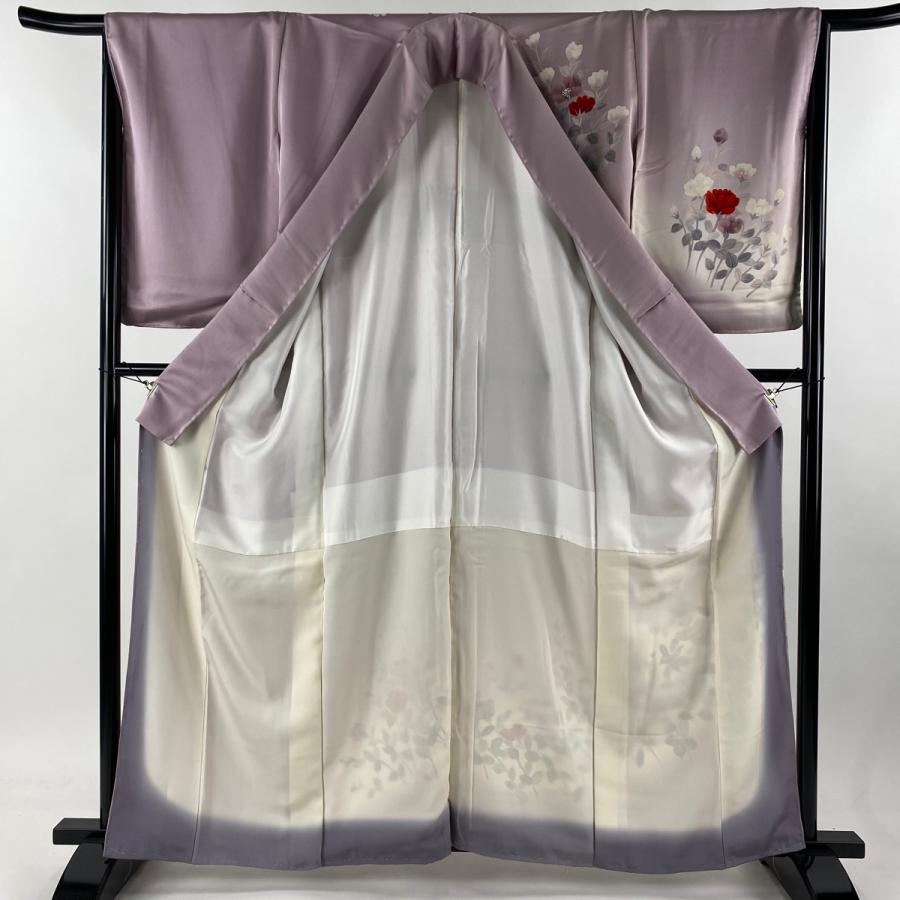 付下げ 身丈161cm 裄丈66.5cm M 袷 草花 ぼかし 薄紫 正絹 秀品 中古