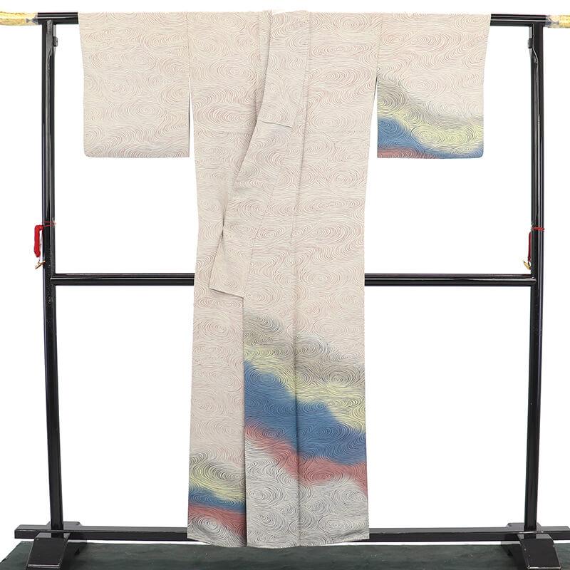 中古 訪問着 レディース 正絹 ベージュ 流水文様 色ぼかし 作家物 身丈160cm 裄丈62.5cm 仕立て上がり着物 リサイクル着物 即日発送