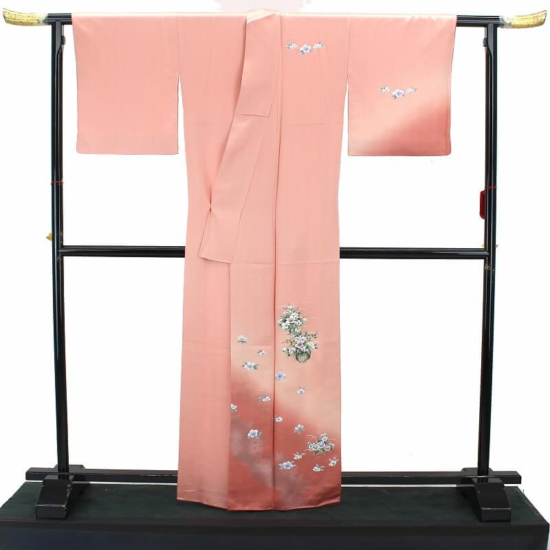中古 付下げ 着物 正絹 袷 礼装 フォーマル レディース ピンク 桜 菊 身丈166cm 裄67cm リサイクル着物