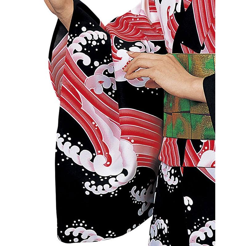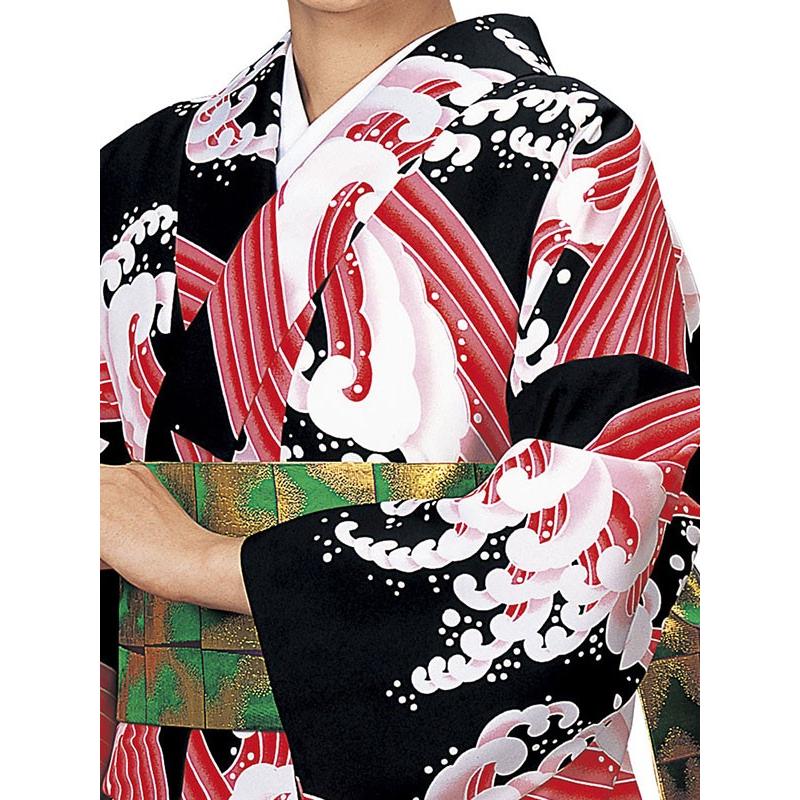 黒地に、躍動感のある大波を染め上げた小紋反物です。踊りや舞台用の衣裳としてのほか、卒業式・謝恩会やパーティーなどの晴れの装い、趣味のサークルのお揃い着物などにご利用ください。