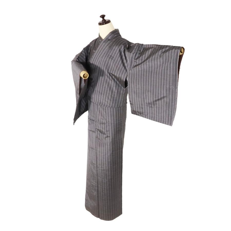 大島紬 袷 正絹 グレー 薄グレー 縦縞 Lサイズ ki28401 新品 レディース シルク ギフト オールシーズン 在庫限り 送料込み