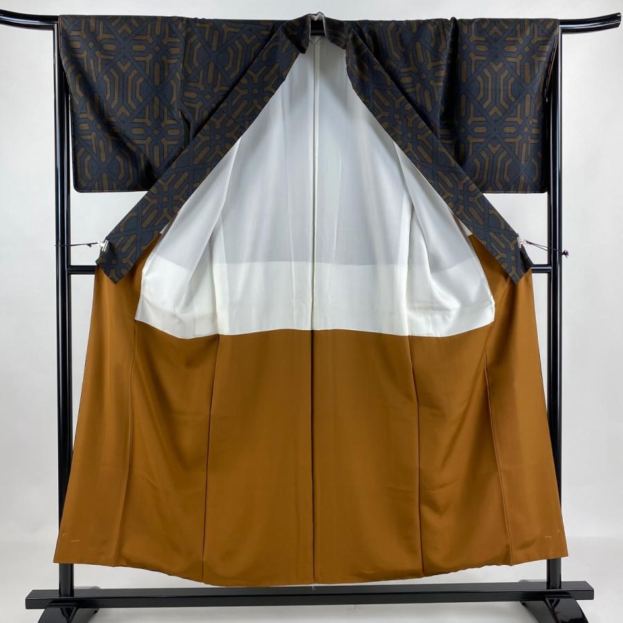 紬 身丈154cm 裄丈66cm M 袷 幾何学模様 灰茶 正絹 美品 秀品 中古